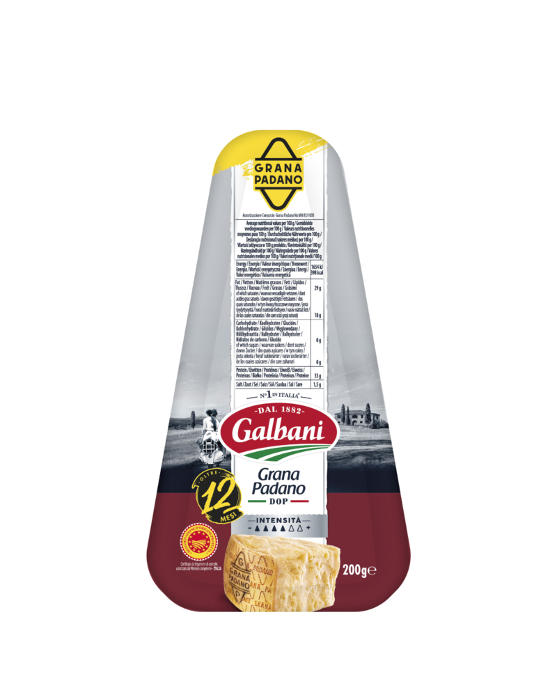 Grana Padano DOP har en karaktäristisk rund och fyllig smak. Lagringstiden är 9 till 12 månader. Perfekt att riva över pasta eller risotto eller njut av den som en del av ostbrickan.